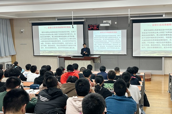 在本次报告中,李锐研究员详细介绍了他在黄土高原水土保持事业中的成长历程和见解,强调了中国生态文明建设的重要性。他的报告内容主要包括三个方面:前辈们崇高奉献精神的激励、水土保持实践中锻炼与成长、努力传承和弘扬黄土精神。李锐研究员通过讲述自己年轻时期在艰苦环境下对科研的坚守与执着,鼓舞激励了在场每一位认真听讲的同学。同时,李锐研究员指出,黄土高原地区面临的水土流失问题对中国的生态环境和可持续发展产生了严重影响,水土保持工作是生态文明建设的核心组成部分,对于保护生态环境、改善人民生活质量至关重要。