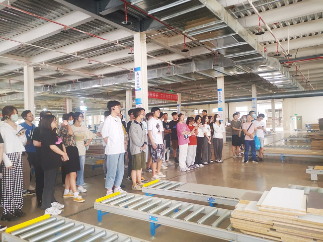 实习活动最后两天,还组织学生线下参观了省内的陕西范玺家具系统工程有限责任公司和宝鸡华保家具有限责任公司。企业的设计师与工程师为学生讲解了有关家具与室内设计、家具生产工艺、质量管理体系等相关专业知识,同学们近距离地了解了现代企业的生产管理模式,并掌握了家具类型、家具材料、家具结构、家具工艺、家具设备等内容。